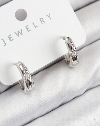 Pirinç Zirkon Taşlı Halka Model Gümüş Renk Kadın Küpe
