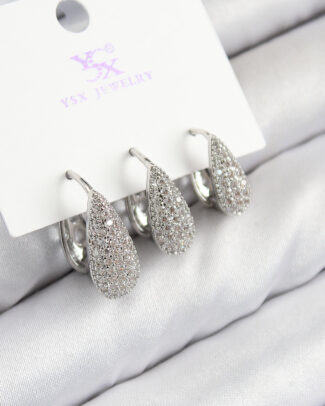 Pirinç Zirkon Taşlı 3’lü Damla Model Gümüş Renk Kadın Küpe