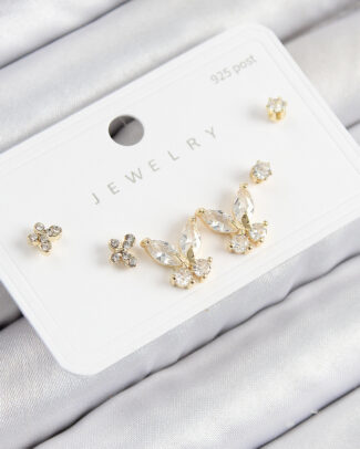 Pirinç Zirkon Taşlı Kelebek Model Gold Renk 925 Ayar Gümüş Çivi Kadın Küpe Set