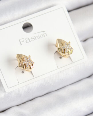 Pirinç Zirkon Taşlı Yıldız Model Gold Renk Çocuk Küpe