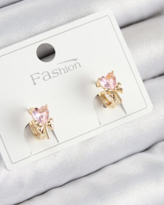 Pirinç Zirkon Taşlı Fiyonklu Kalp Model Gold Renk Çocuk Küpe