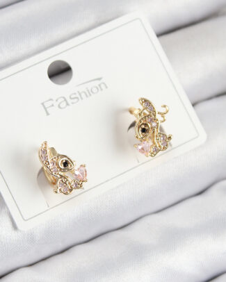 Pirinç Zirkon Taşlı Ceylan Model Gold Renk Çocuk Küpe