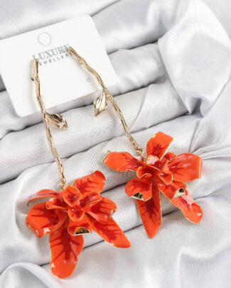 Pirinç Sallantılı Turuncu Çiçek Model Gold Renk Kadın Küpe