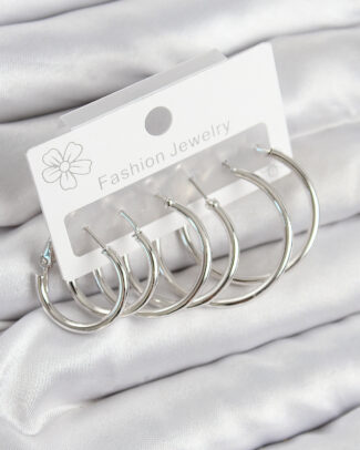 Pirinç Halka Model Gümüş Renk Kadın Set Küpe