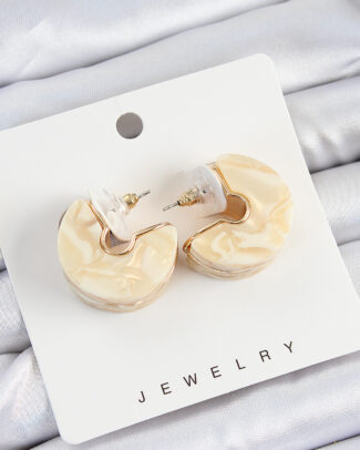 Pirinç Mermer Desenli Vintage Yarım Halka Model Gold Renk Kadın Küpe