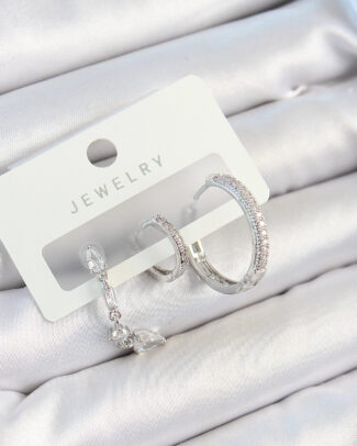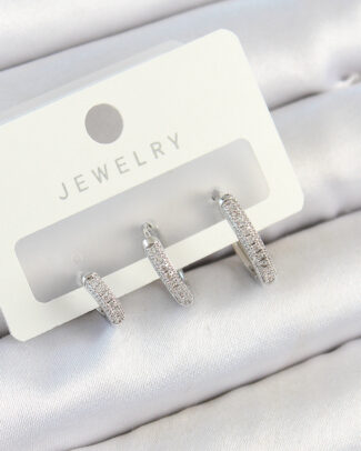 Pirinç Zirkon Taşlı Halka Model Gümüş Renk 3’lü Çift Kadın Küpe Set