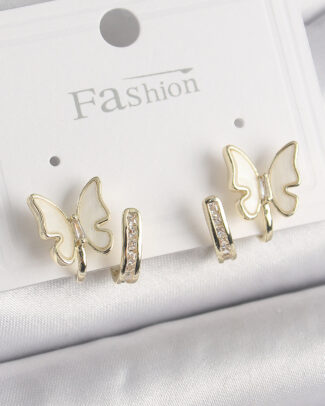Pirinç Gümüş Renk Zirkon Taş Detaylı Beyaz Sedefli Kelebek Model Kadın Küpe