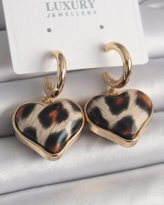 Pirinç Gold Renk 3D Kalp Leopar Model Kadın Küpe