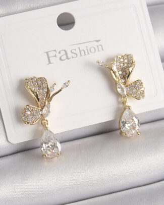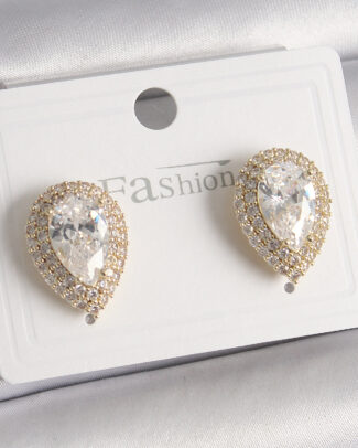 Pirinç Gold Renk Zirkon Taşlı Damla Model Kadın Küpe