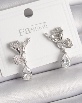 Pirinç Gümüş Renk Zirkon Taşlı Damla Model Kadın Küpe