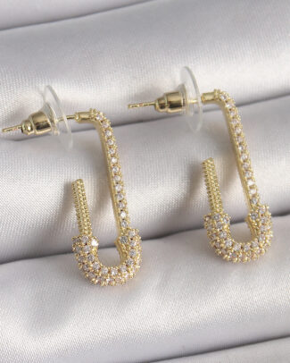 Pirinç Gold Renk Zirkon Taşlı Çengelli İğne Model Kadın Küpe