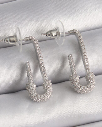 Pirinç Gümüş Renk Zirkon Taşlı Çengelli İğne Model Kadın Küpe