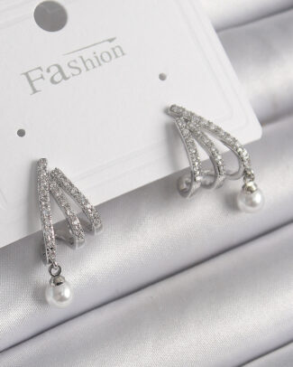 Pirinç Gümüş Renk Zirkon Taşlı Pençe Model İnci Detay Kadın Küpe