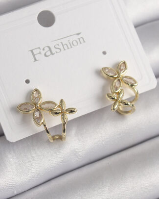 Pirinç Gold Renk Zirkon Taşlı 2’Li Çiçek Model Kadın Küpe