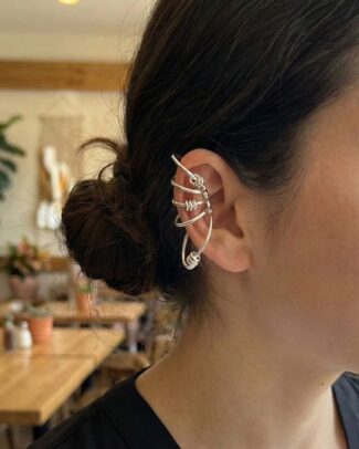 Pirinç Halkalı Model Gümüş Renk Kıkırdak Küpe