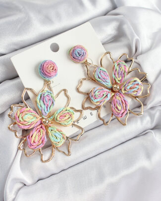 Pirinç Rainbow Çiçek Model Gold Renk Kadın Hasır Küpe