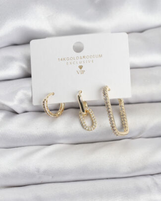 Gold Renk Zirkon Taşlı 3’lü Kadın Küpe Seti