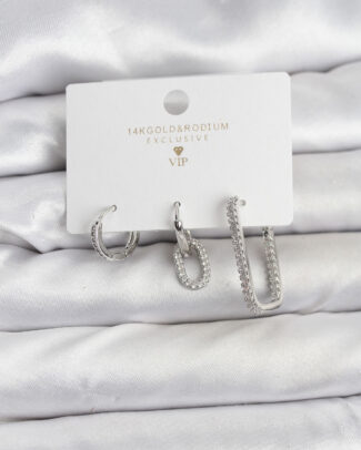 Gümüş Renk Zirkon Taşlı 3’lü Kadın Küpe Seti