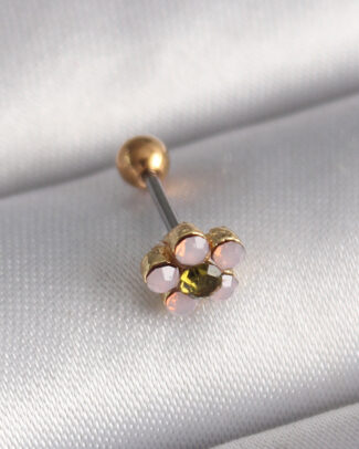 316L Çelik Gold Renk Zirkon Taşlı Çiçek Tragus Piercing
