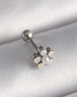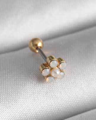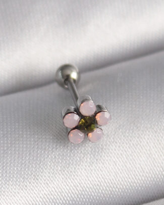 316L Çelik Gümüş Renk Zirkon Taşlı Çiçek Model Tragus Piercing