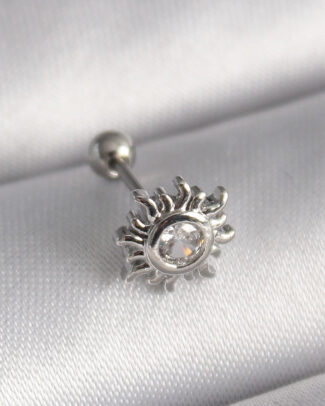 316L Çelik Gümüş Renk Zirkon Taşlı Güneş Tragus Piercing