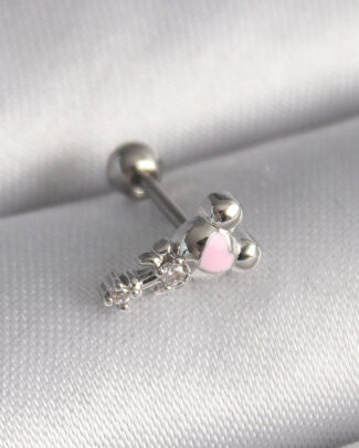 316L Çelik Gümüş Renk Zirkon Taş Detay Pembe Kalp İşleme Tragus Piercing