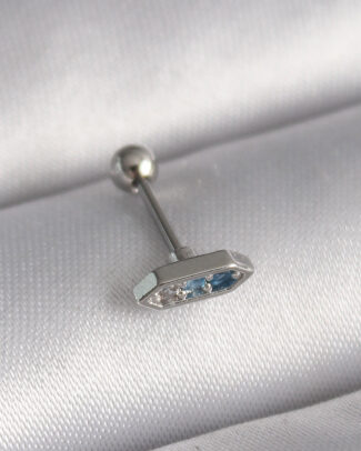 316L Çelik Gümüş Renk Mavi Zirkon Taşlı Tragus Piercing