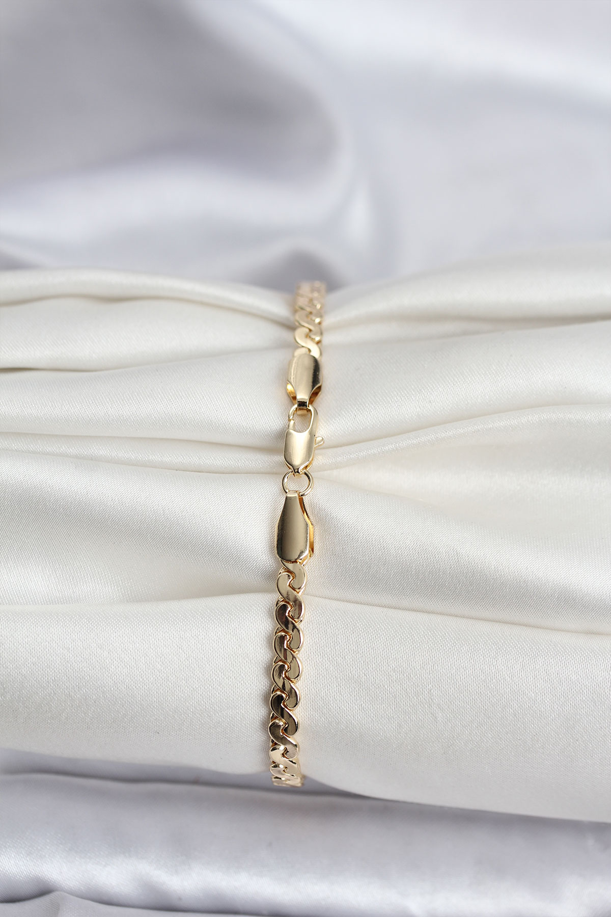 14K Gold Renk Kaplama Ezme Yılan Zincir Model CM Kadın Bileklik