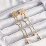 316L Çelik Altın Renk Sallantılı Düğüm Model Papatya Küpe