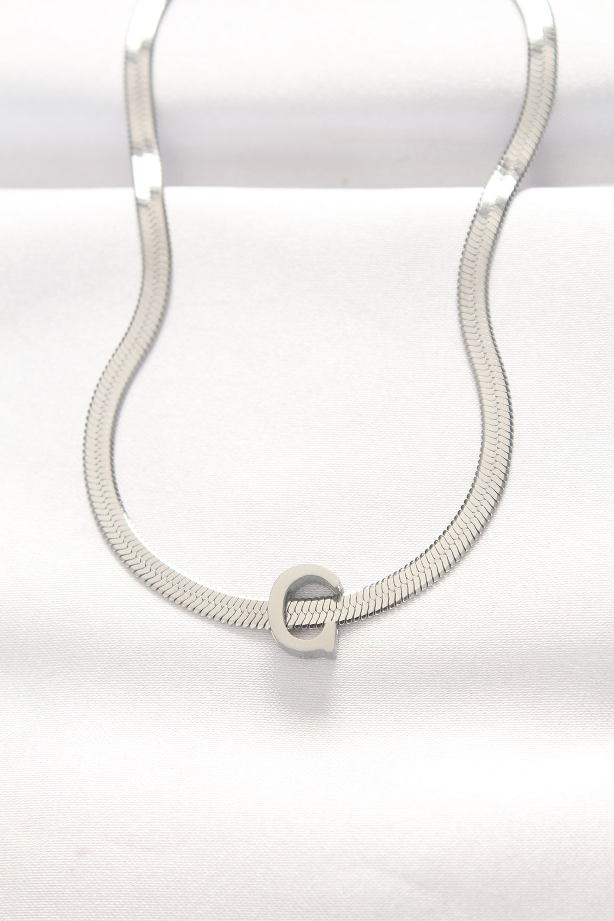 316L Çelik C Harfli Silver Renk İtalyan Zincirli Kolye