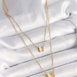 316L Çelik Gold Renk 2’Li Simli Kelebek Model Kadın Kolye