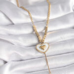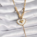 316L Çelik Gold Renk Beyaz Sedefli Kalp Model Sallantı Detay Kadın Kolye