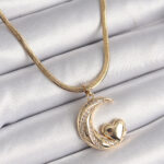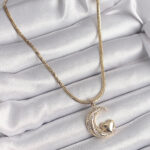 316L Çelik Gold Renk Çelik İtalyan Zincir Zirkon Taşlı Halil Figür Kalp Detay Kadın Kolye