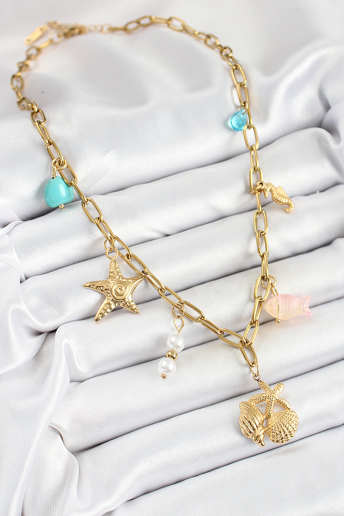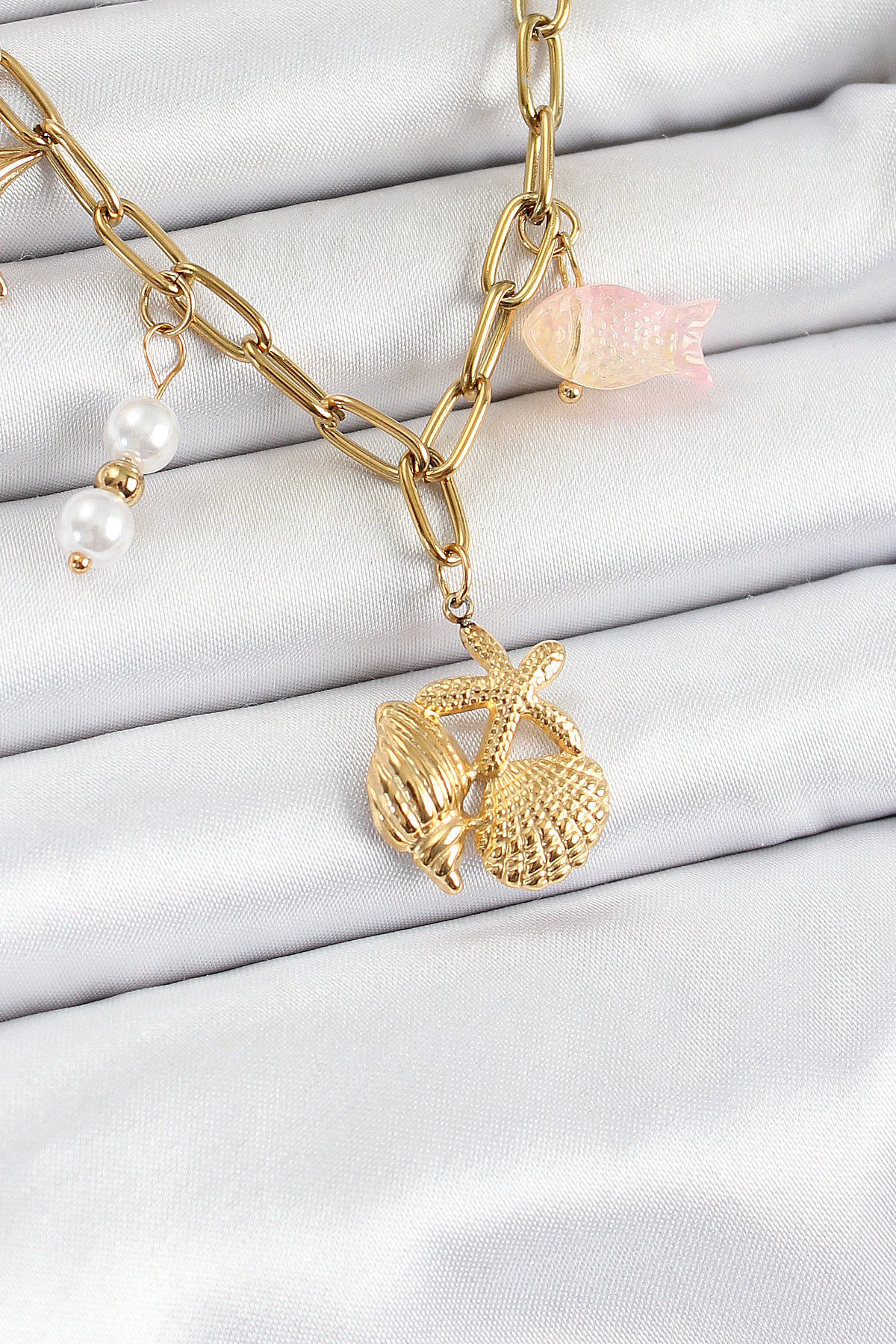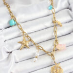 316L Çelik Gold Renk Deniz Yıldızı ve Deniz Kabuğu Konsept Kadın Kolye