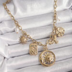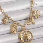 316L Çelik Gold Renk Halka Zincir Sallantı Ay Güneş Figür Kuş Detay Kadın Kolye