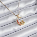 316L Çelik Gold Renk Hilal Kedi Model Zirkon Taşlı Detay Kadın Kolye
