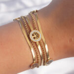316L Çelik Gold Renk İtalyan Zincir Detaylı Zirkon Taşlı Yaşam Ağacı Tasarımlı Çoklu Bileklik