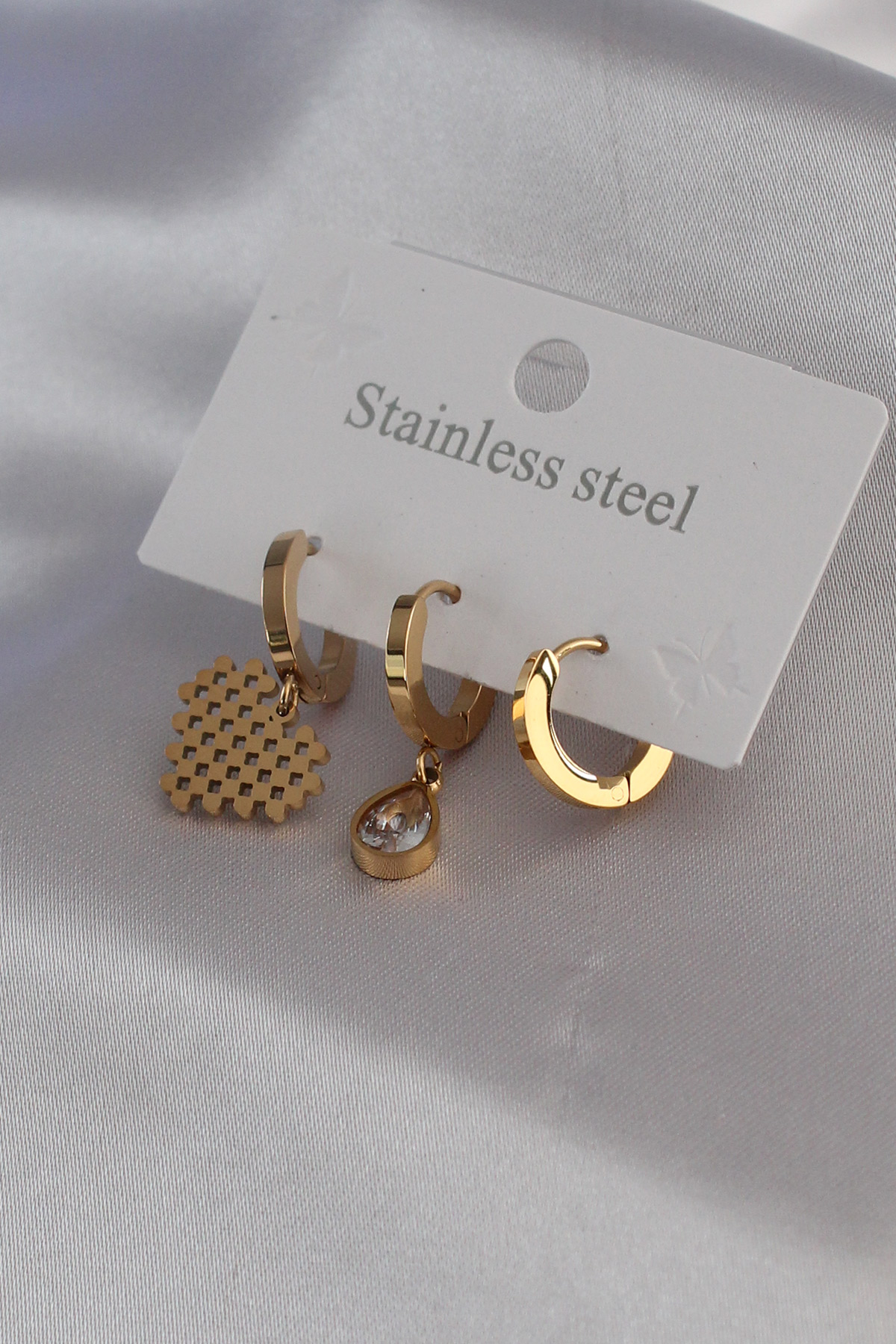 316L Çelik Gold Renk Kalp Model Zirkon Taş Detay Kadın Küpe Kombini