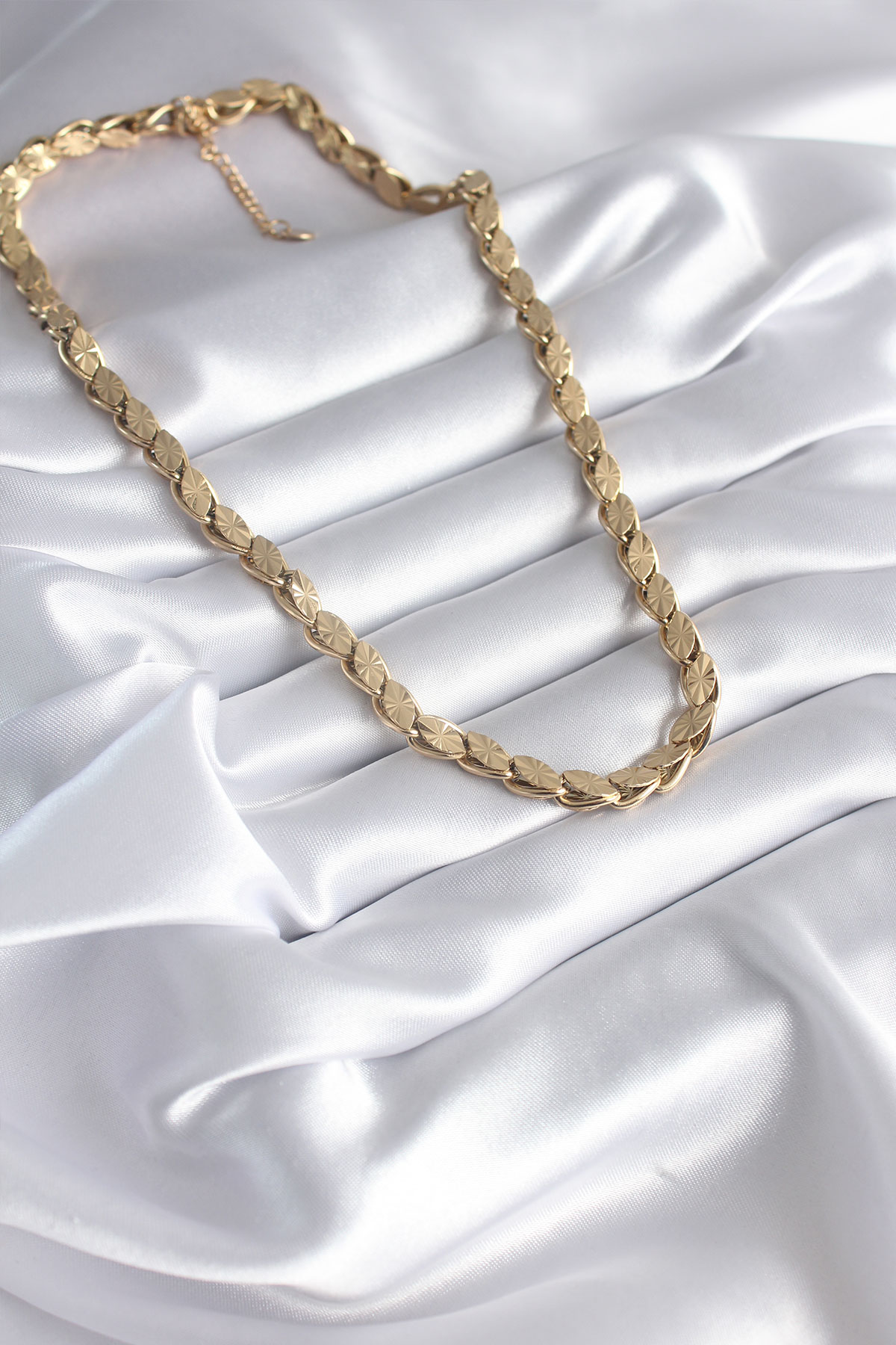 316L Çelik Gold Renk Lazer Kesim Arpa Zincir Model Kadın Kolye