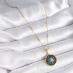 316L Çelik Gold Renk Mavi Boncuk Güneş İşleme Madalyon Model Kadın Kolye