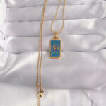 316L Çelik Gold Renk Mavi Mineli El Figür Tarot Kolye
