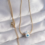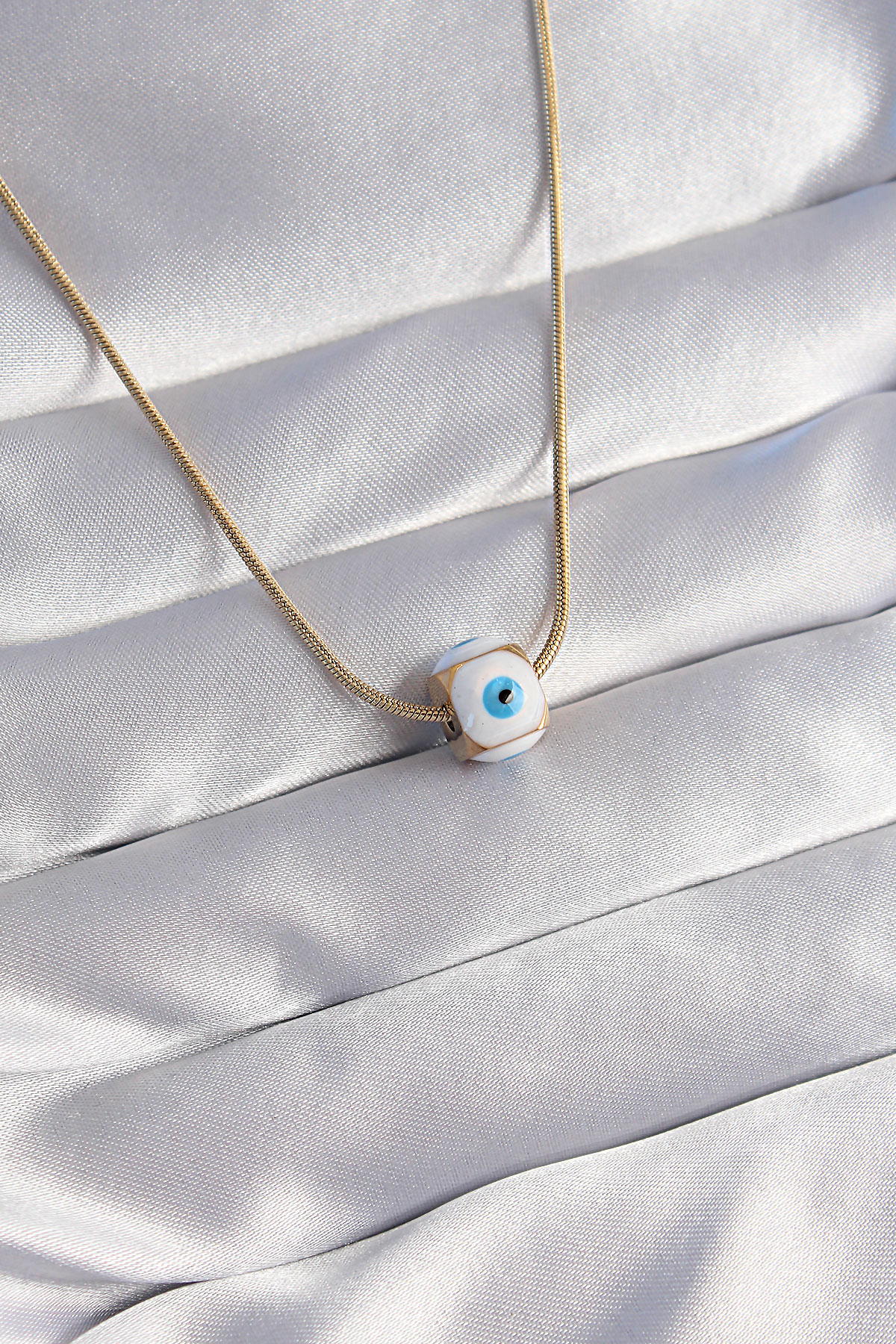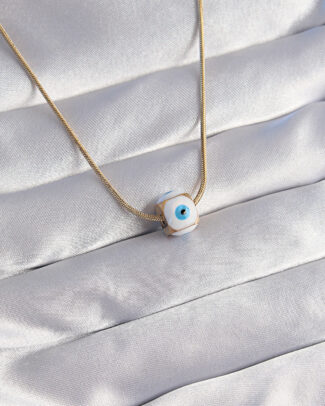 316L Çelik Gold Renk Mineli Nazar Model Kolye