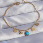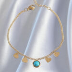 316L Çelik Gold Renk Minimal Kalpli Mavi Taş Detaylı Bileklik