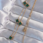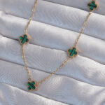 316L Çelik Gold Renk Minimal Yeşil Mineli Yonca Kolye