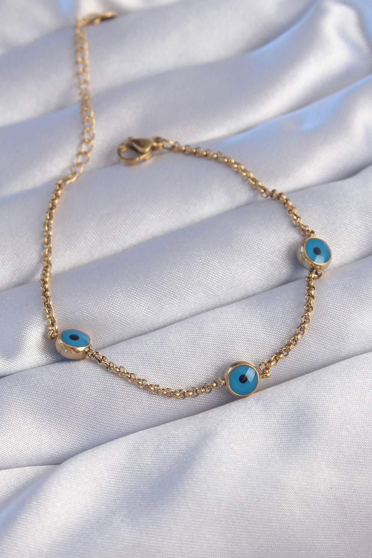 316L Çelik Gold Renk Nazar Boncuk Tasarımlı Bileklik