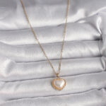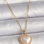 316L Çelik Gold Renk Zincir 3D İnci Kalp Model Kadın Kolye