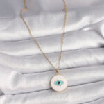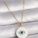 316L Çelik Gold Renk Zincir Beyaz Mineli Turkuaz Göz İşleme Model Kadın Kolye