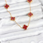 316L Çelik Gold Renk Zincir Bordo Yonca Kadın Kolye