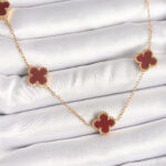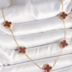 316L Çelik Gold Renk Zincir Bordo Yonca Model Kadın Kolye