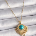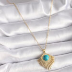 316L Çelik Gold Renk Zincir Mavi Boncuk Güneş Model Kadın Kolye